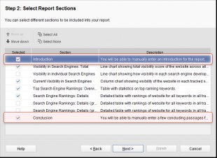 Whenever creating a report template for your customer in SEO PowerSuite, just tick the Introduction and Conclusion checkboxes and type any comments you wish to add to reports.