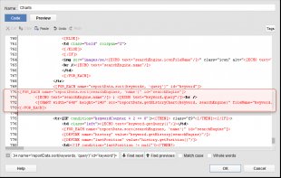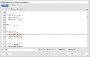 - In the Code view use Ctrl+F to open the search panel and find the line: