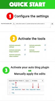 There are several auto blogging plugins that can be used with WordPress. An auto blogging plugin, such as an RSS plugin or WP Content Crawler, is used to automatically get content from other sites to your WordPress site. You can get content from other sites, but, most of the time, you cannot automatically edit those automatically saved posts. WP Post Tools offers a few tools that can be used to automatically edit those posts. The plugin can work with any auto blogging plugin